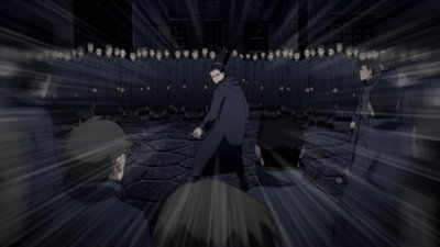 Orochimaru brings Sasuke to the Coliseum fighting ring, to lure out En Oyashiro, who may have some information regarding the Exploding Human incident. The match is called off when more Exploding Humans appear and the opportunity to meet Oyashiro seems lost. However, impressed by Sasuke’s Sharingan, Oyashiro approaches him in person.