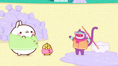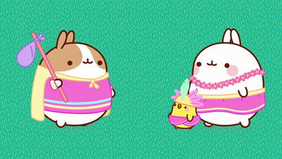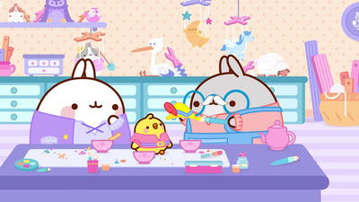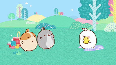 Molang is an affectionate and humorous perspective on the relationship between an eccentric, joyful, and enthusiastic rabbit and a shy, discreet, and emotional little chick. Despite their many differences, these two enjoy a unique friendship. They have great times together ranging from the mundane to the extraordinary. Whether they're flying to the moon or merely watering the vegetable patch, Molang and Piu Piu experience unexpected, even unsettling situations. Tricky incidents and misunderstandings are soon transformed into opportunities for fun moments and humor, which Molang's friends are happy to come and share in.