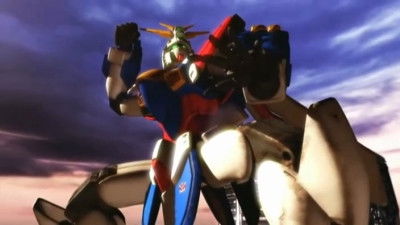 Future Century: Domon Kasshu is practicing Tai Chi with the God Gundam. However, suddenly Rain Mikamura appears in the Rising Gundam and attacks him!