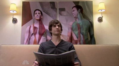 At a clothing store, a man (Samberg) is unconvinced that the V-neck shirt he is trying on is for him, despite his girlfriend's (Pedrad) assurances.
