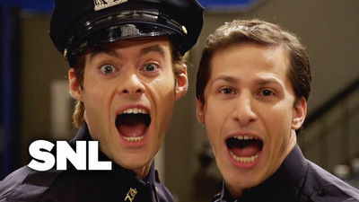 Two cops (Hader and Samberg) bored at work find music in everyday life (parody of Stomp).