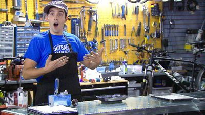 At a deli, Michael bakes bread with power tools, and in a tux store, his outfit change doesn't suit his customer.