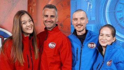 Two teams of friends face off to see which of them will win the coveted golden gavel. In red are a pair of university students, and in blue, it’s a duo of gym-goers.