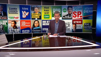 In the preliminary projection by ANP, D66 and the PVV have become the largest parties, both now standing at 26 seats. Due to the small margins, it may take days before it is clear which party has become the largest. The broadcast is entirely focused on the election results, with analysis by political commentators Arjan Noorlander and Nynke de Zoeten, various prominent party members, voters, and political scientist Matthijs Rooduijn, who researches far-right parties and voter behavior.