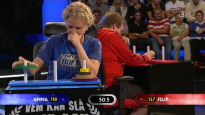 Supertjejen Anna Jepson, 26 år, går som sista utmanare upp mot Filip & Fredrik. Till sin hjälp har hon tennislegendaren Jonas Björkman. Utmanaren i den sista tävlingen är Anna, 26 år från Stockholm. Anna är student på KTH där hon snart har sin examen.