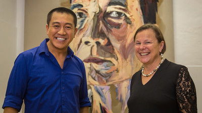Anh paints burns specialist & 2005 Australian of the Year Fiona Wood. The daughter of a Yorkshire miner became one of our greatest medical minds & inspires Anh with her enthusiasm & optimism.