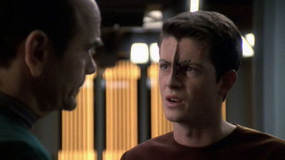 Stardate: Unknown. Seven of Nine obsessively investigate pursues a conspiracy theory about Voyager’s arrival in the Delta Quadrant.
