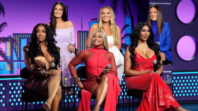Heather Gay, Meredith Marks, Porsha Williams, Cynthia Bailey, Lisa Barlow, and Phaedra Parks join host Andy Cohen.