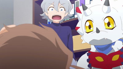 A voice whispers into the ear of Shadramon, who is afraid of returning to Digitama form and forgetting everything. It says, “I'll leave those memories for you.” Soon after, Kiyoshiro realizes that something is wrong with his friend, Tamotsu.