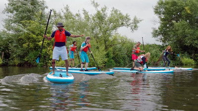 The Jurassic Coast: Exmouth Country Lodge: The campers dive in at Exmouth Country Lodge with some giant paddleboarding and a cruise