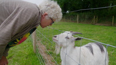 Pembrokeshire: Coedfryn Farm: The campers get to know the resident alpacas before taking part in a pagan ceremony