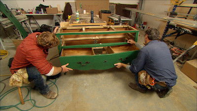 With the second floor sanded, stained and sealed, the crew commences work on the first floor; the custom refrigerator panels are spotlighted; and a chest of drawers is re-purposed as the sink base in the powder room. Also: local designer Robin Gannon shows how she decorated 22 rooms of an historic inn.