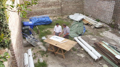 Richard works on rough plumbing at the Elliotborough house while Kevin, Judith, and Julia meet a kitchen designer. The rotting porch gets assessed. A new old floor goes down at the single house. Tommy and Mark snake wires through a brick wall.