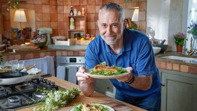 Michel cooks rack of lamb with seasonal greens, shares his family recipe for pork rillettes, cooks Mediterranean scorpion-fish with foraged herbs, leaves and flowers and recreates a glamorous dessert bringing back memories of young love.