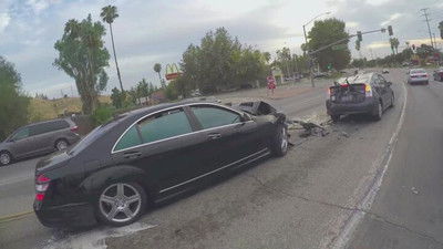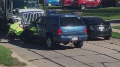 In Nebraska, an SUV runs into a sanitation worker whose truck blocks its way; a driver in Las Vegas falls out of his vehicle while doing donuts in a parking lot; in Los Angeles, a stolen utility vehicle goes on a wild rampage.