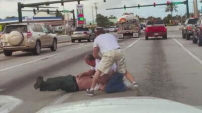 A crossing guard in Pennsylvania gets in a fight with an impatient motorist. In Texas, a four-car pile-up leads to a stabbing on the freeway. An exploding manhole cover in Thailand launches a motorcyclist into the air. In Florida, a jet makes an emergency landing on a three-lane highway. Climate protesters blocking Burning Man traffic are confronted by authorities.