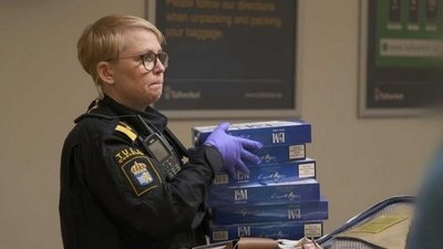 At Arlanda, a bag of food is opened, and when Tessan checks a bottle, a red chili pepper squirts out. Timor finds lots of alcohol and suspects contraband.
