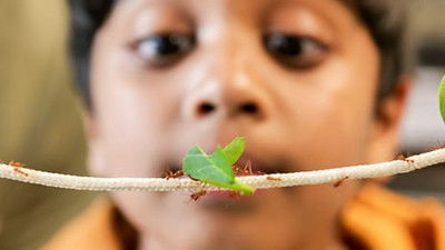 Steve and Aneeshwar help to feed Ruby the Harris’s hawk and take her out for some flying in the woods. They get a close-up look when she lands on their gloves, and they learn about what makes Ruby so special. Next, Steve and Aneeshwar check out a colony of leafcutter ants. They watch them snip up leaves and carry them to their nest. Finally, they discover the wild connection between these two amazing animals.