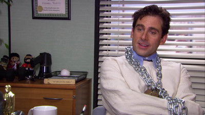 Kevin is afraid of Andy; Stanley wins a bet with Karen; the office takes turns trying to talk Michael down.