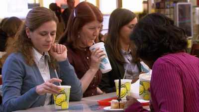 Karen admits to a guilty pleasure; Dwight suggests charging Creed rent; Pam feels self-conscious in her new wardrobe.