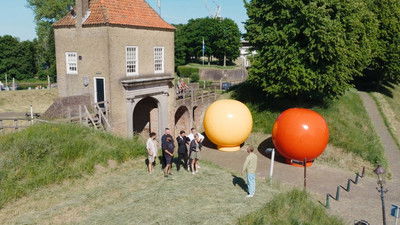 In the new SBS6 program, teams of famous Dutch people have to bring a giant ball with a diameter of 4 meters from point A to point B. Whoever does this the fastest wins. The Saturday evening show is performed by Jan Versteegh.