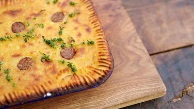 Jamie gives fish and chips a homemade makeover that's healthier and super tasty. Plus, he takes iconic British ingredients, sausage and mash, and creates a pie like you've never seen before.