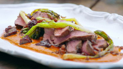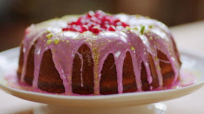 Jamie creates a super-speedy version of a hoisin pork takeaway with a giant tear-and-share steamed bun, reveals the perfect snack to go with his favourite cocktail, and bakes a beautifully pink cake to keep the whole family happy.