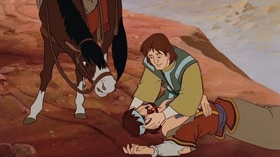 The Prodigal Son, Jacob, leaves his father's farm to seek his fortune in the city. Encountering many temptations, Jacob squanders his inheritance. Reduced to living with animals, he decides to return to his father's home regardless of the consequences. His father welcomes Jacob home, celebrating his return and forgiving him of his sins. With a group of followers gathered about him, Jesus tells the parable of the Prodigal Son, Jacob, the younger son of a successful farmer, begs his father for his inheritance so he can go to the city and become a rich money lender. ...