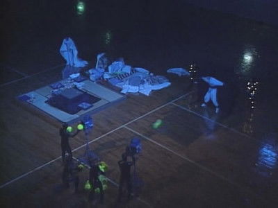 After Matsumoto loses a swimming match (match aired on Feb. 11, 2001) against the other four cast members, a batsu game is set at a "haunted ryokan", where Matsumoto must remain overnight. He endures ghost apparitions, a seemingly empty samurai suit that comes alive, and random knocks on walls, among other things. The other four cast members attend to support him in controlling his fear, but end up scaring him as well.