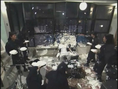 In this game, Matsumoto is punished for losing a bet (bet aired on Oct. 27, 2002) with Hamada over the 2002 Japan Series. In their bet, Hamada picked the Yomiuri Giants while Matsumoto picked the Seibu Lions; the Giants won the series four games to none. Matsumoto's punishment was having to spend a day at home while Hamada, Endō, Tanaka and Yamasaki threw pies at him (after showering and in bed) and everything he touched (including a television set and a toaster), non-stop. Matsumoto had to ignore all of this while following prompts from a narrator over the sound-system.