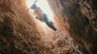 Team Salvage is tasked with retrieving a motorbike from an unstable mine shaft; it's a race against the clock to retrieve a vessel in trouble before a massive storm hits.