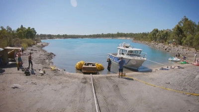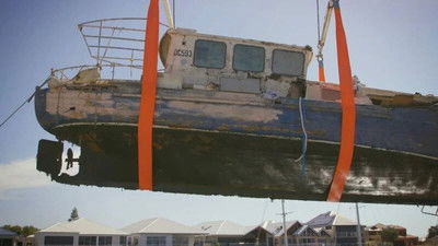 The team explore a boat graveyard in Harvey Estuary, Western Australia, where they recover a ship called Endeavour II.