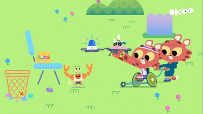 The twins meet a crab who looks like Podium.
