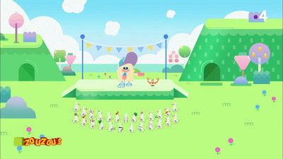 Olivia and Podium face off in a hula hoop contest.