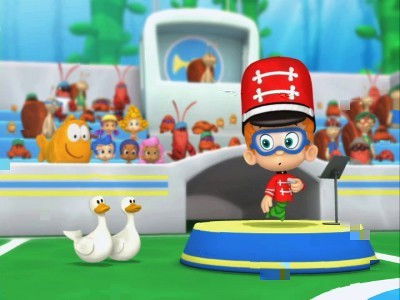 Duck! Nonny meets a Marching Band with a Duck problem. The Duck is in the way and they can't play their instruments! But with a little whistle, and a little help from Mr. Grouper and the Bubble Guppies, Nonny learns how to lead the Marching Band--ducks or no ducks.