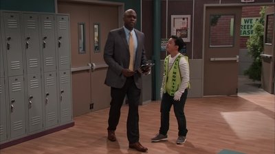 Cami goes to great lengths to try and persuade Principal Walker to call a snow day and cancel school, including enlisting their local weatherman Duke Thunders for help.