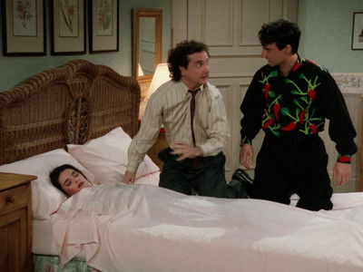 When Balki shows Larry that Jennifer has been knitting booties, The possibility that Jennifer is pregnant causes Larry to imagine Larry and Balki's future sons becoming best friends in the nursery trying to escape.
