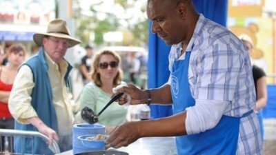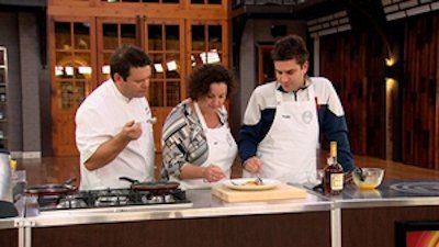 Pressure Test Elimination - Aaron, Sandra and Julie faced elimination and had to make paella.