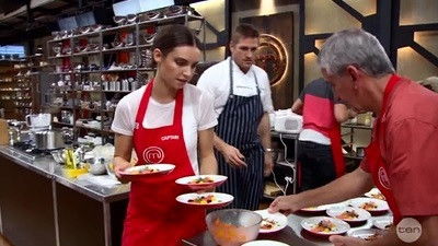 Three contestants must cook off in an elimination pressure test with one leaving forever. Also, the contestants sit the final MasterClass, joined by special guest chefs Curtis Stone and Kylie Kwong.
