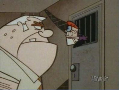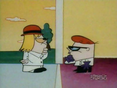 After Dexter and Dee Dee destroy Dad's bowling trophy, they are sent to each other's room.