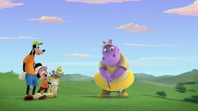 At the first "Pit Stop and Go" rally that is attended by Gordon Gear and Danni Sue, pit crews compete against each other to see who is the fastest and most efficient pit crew while avoiding obstacles in the race. Mickey has Donald, Chip, and Dale as his pit crew, Minnie, Daisy, and Cuckoo Loca are paired up with Danni Sue, and Goofy and Pluto are paired up with Gordon Gear.