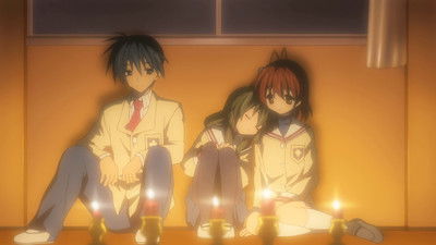 The drama club is finally re-established and Koumura is shared with the choir club. Tomoya's home room teacher goes to Tomoya's house to ask his father about his future, but Tomoya's father says that is something that Tomoya has to decide for himself. Seeing the strained relationship between Tomoya and his father, Nagisa offers to have Tomoya stay over at her house for the time being, which he accepts. After coming home from school, Tomoya finds several small kids in Nagisa's house, and finds out Sanae is instructing them in a cram school. Nagisa confides to Tomoya that she feels she did something really bad to her parents in the past, but she cannot remember what it is, and her parents say that she must be imagining it.