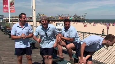 The guys compete to embarrass each other, tackling speed dating with the world's worst pickup lines, reading phony fortunes on the boardwalk, and getting too personal with shoppers in the hygiene aisle of a pharmacy.