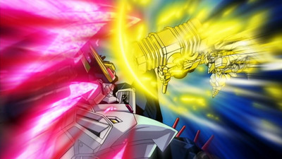 Genesic GaoGaiGar demonstrates its sheer destructive power against the 11 Planetary Masters of Sol. The Gutsy Galaxy Guard arrives partway into the battle, cured of the influence of Paras Particles. The members of the Mobile Unit (as well as J-Ark) end up faced off against their counterparts, with Soldato J's power being restored and enhanced by proximity to Renais Kerdif-Shishioh's G-Stone. The battles end up spread across the entire Repli-Earth, and Genesic GaoGaiGar's fight with Palparepa is shown to be very one-sided until Palparepa powers up by injecting himself with his own Doping Cylinders. The episode ends with Palparepa using his improved God and Devil as Guy unveils the true form of Hell and Heaven.