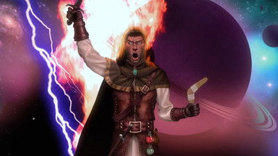 A quest-addicted hero slashes his way across a satirical fantasy universe with melodramatic ferocity, always obeying the letter of the law but never its spirit.