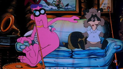 After not too long, Bert finds a promising tar pit and prepares to examine it more closely. But the pigs, thinking they'd improve Cedric's chances in the contest by sabotaging Bert's project, sink a heap of fresh bones in the pit, and thus cause confusion as usual.