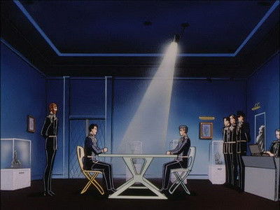 Reuenthal is arrested by the Imperial police under suspicion of overthrowing Reinhard. It is revealed that Lang, the head of the secret police initialed the investigation. Reuenthal is accused of harboring a woman of the exiled Lichtenlade family. Oberstein is suspicious of Lang's intentions. It is revealed that the woman is pregnant with Reuenthal's child. Reuenthal is granted a hearing from Reinhard that very afternoon. Reinhard and Reuenthal reminisce on the past. The Imperial officers direct their hatred toward Oberstein.