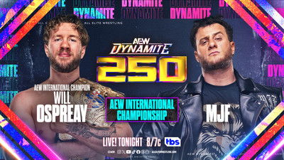 On the landmark 250th edition of Dynamite, MJF challenges Will Ospreay for the International Championship. Mercedes Mone defends the TBS Championship against Nyla Rose. Mariah May addresses her betrayal of Toni Storm. World Champion Swerve Strickland and Continental Champion Kazuchika Okada go one-on-one.