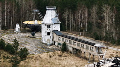 Exploring a derelict stadium in Lithuania that hosted an unlikely Cold War matchup and an industrial relic in England.