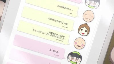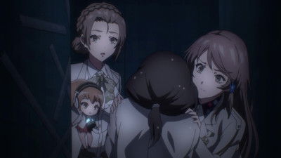 After talking to Ritsu about the truth of their world, Aria and Shogo ask him to lend them his aid. Later Shinohara Mifue and Morita Naruko, who also started to notice the incongruities in their world like Ritsu, visit the music prep room as well. While others are talking about people being "spirited away" on the gossiper, Tomoe Kotaru dashes into the room claiming he can no longer reach his friend who went into the library...